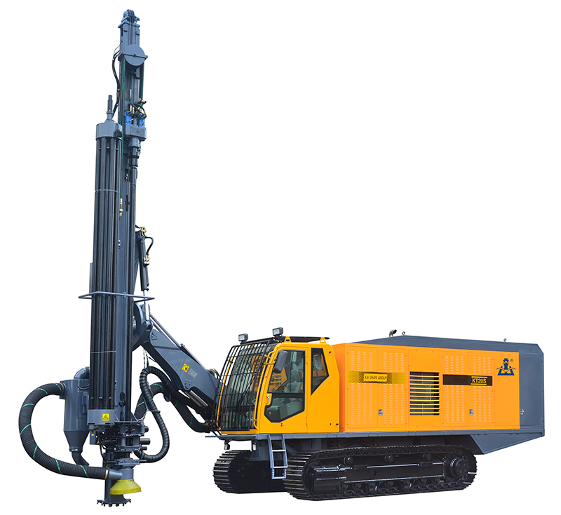 Буровой станок на гусеничном ходу KT20S с интегрированным винтовым компрессором - это мощная буровая установка с двумя двигателями, разработанная нашей компанией для использования на крупных открытых горных разработках. Системы ходовой части, вращения и регулировки угла приводятся в движение мощной гидравлической системой. Для движения буровая установка на гусеничном ходу KT20S использует мощный дизельный двигатель. Бурение осуществляется с помощью погружного пневмоударника (DTH) и винтового воздушного компрессора. Наличие пылеулавливателя сухого типа позволяет защитить окружающую среду от отходов бурения. Имеется возможность установки мокрого пылеуловителя. Механизм автоматической загрузки и выгрузки буровых штанг, с плавающим головками, защищающими резьбу буровых штанг, способствует эффективности работы станка. Кабина с кондиционером обеспечивает оператору комфортные рабочие условия.